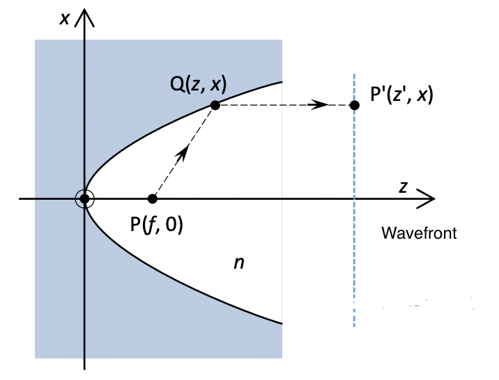 Applying Fermat's principle: parabolic reflector