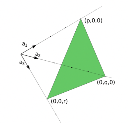 These indices can be gathered by choosing the closest plane to the origin, then find the intersection points along the lines of the primitive vectors: , and .